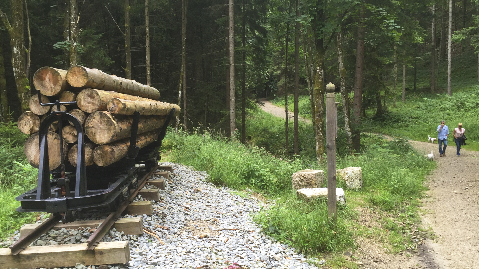 In Spitzingsee und Umgebung wurden nach dem Sturm im Jahre 1919 die Baumüberreste von Holzarbeitern aufbereitet und zur Bockerlbahn gebracht. An der Neuen Wurzhütte finden Sie eine Tafel, auf denen Ihnen die ganze Geschichte und einige Bilder von damals gezeigt werden. Direkt bei der Tafel sehen Sie einen Weg, der nach rechts abzweigt. Sie laufen nun Richtung Rosskopfhaus. Der Weg verläuft auf der Strecke der alten Trasse. Diese befand sich oberhalb der Valepper Almen. Später sprengte man einen Felsen und die Dampflock fuhr durch den Felsdurchbruch ins Tal. Im weiteren Verlauf des Weges erreichen Sie das Blecksteinhaus. Zuvor können Sie allerdings noch einen kleinen Abstecher zum Grünanger machen. Folgen Sie hierfür dem Weg, der Sie auf die Brücke über die Rote Valepp führt. Beim Grünanger befand sich in der Zeit der Bockerlbahn ein riesiges Holzzwischenlager.