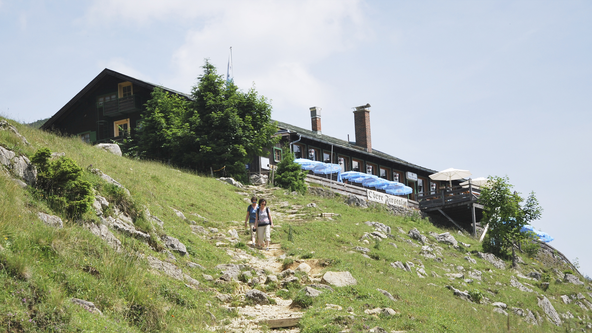 Anschließend wandern Sie weiter auf dem Wanderweg bis Sie auf der rechten Seite die Gabelung zur Buchsteinhütte und Ross- und Buchstein sehen. Biegen Sie dort hinein und laufen Sie den schmalen Pfad entlang bis zur Buchsteinhütte. Jetzt ist es nicht mehr weit bis zum Ross- und Buchstein und der Tegernseer Hütte. Allerdings führt der Weg an der Buchsteinhütte einen steilen Hang hinauf und kostet ein wenig Kraft. Jetzt haben Sie Ihr heutiges Etappenziel erreicht und können in der Tegernseer Hütte Ihr Nachtquartier beziehen.