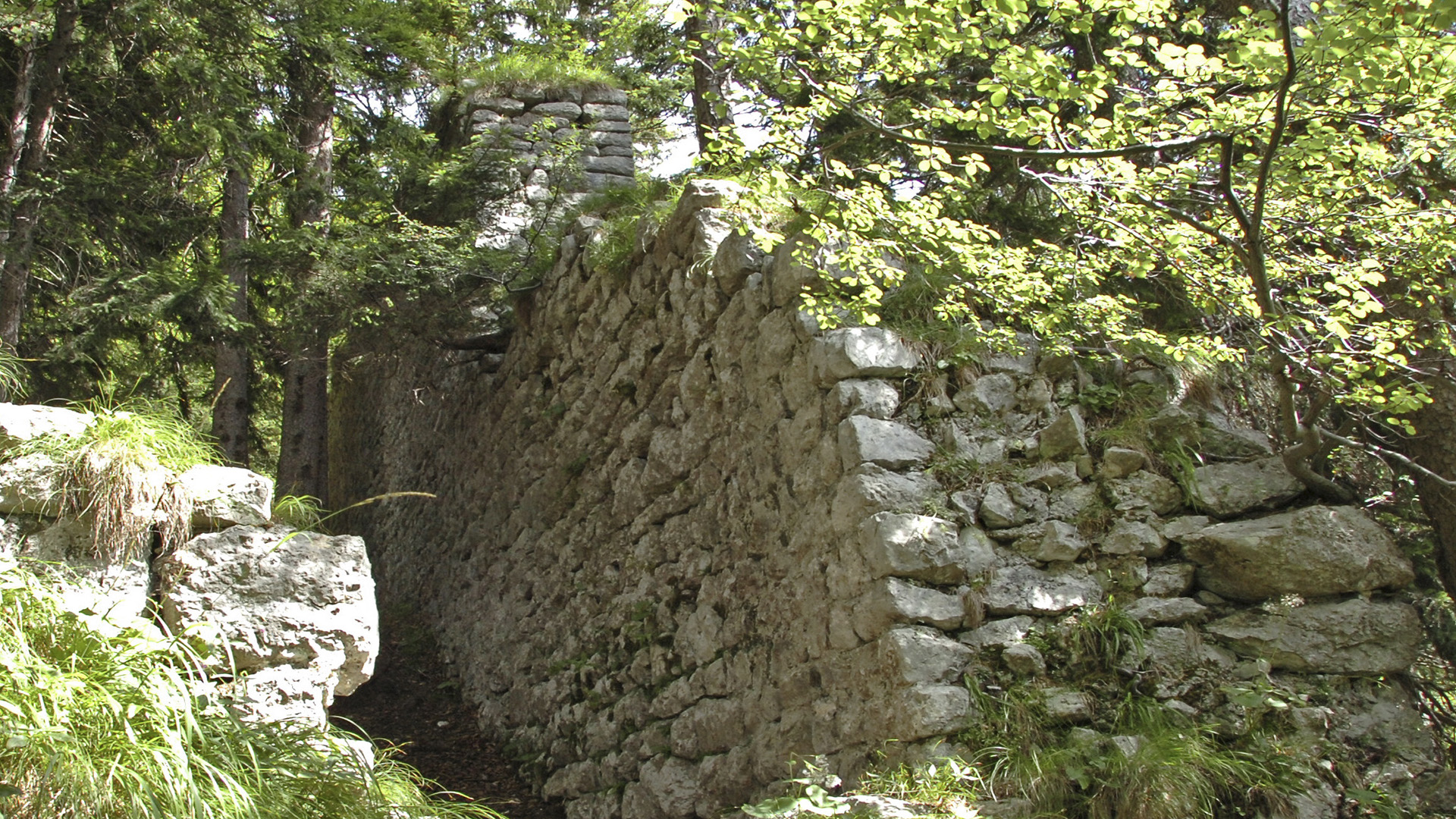 Jetzt wandern Sie über den Ankelbach und kommen auf einem Forstweg an. Laufen Sie weiter an der Kiesgrube vorbei und nehmen Sie dann die Abzweigung Richtung Stockeralmweg. Sie kommen an einigen Gräben vorbei und finden dort eine weitere Hinweistafel. Diese zeigt Ihnen, wo der 3. Bremsberg der Bahn war.
