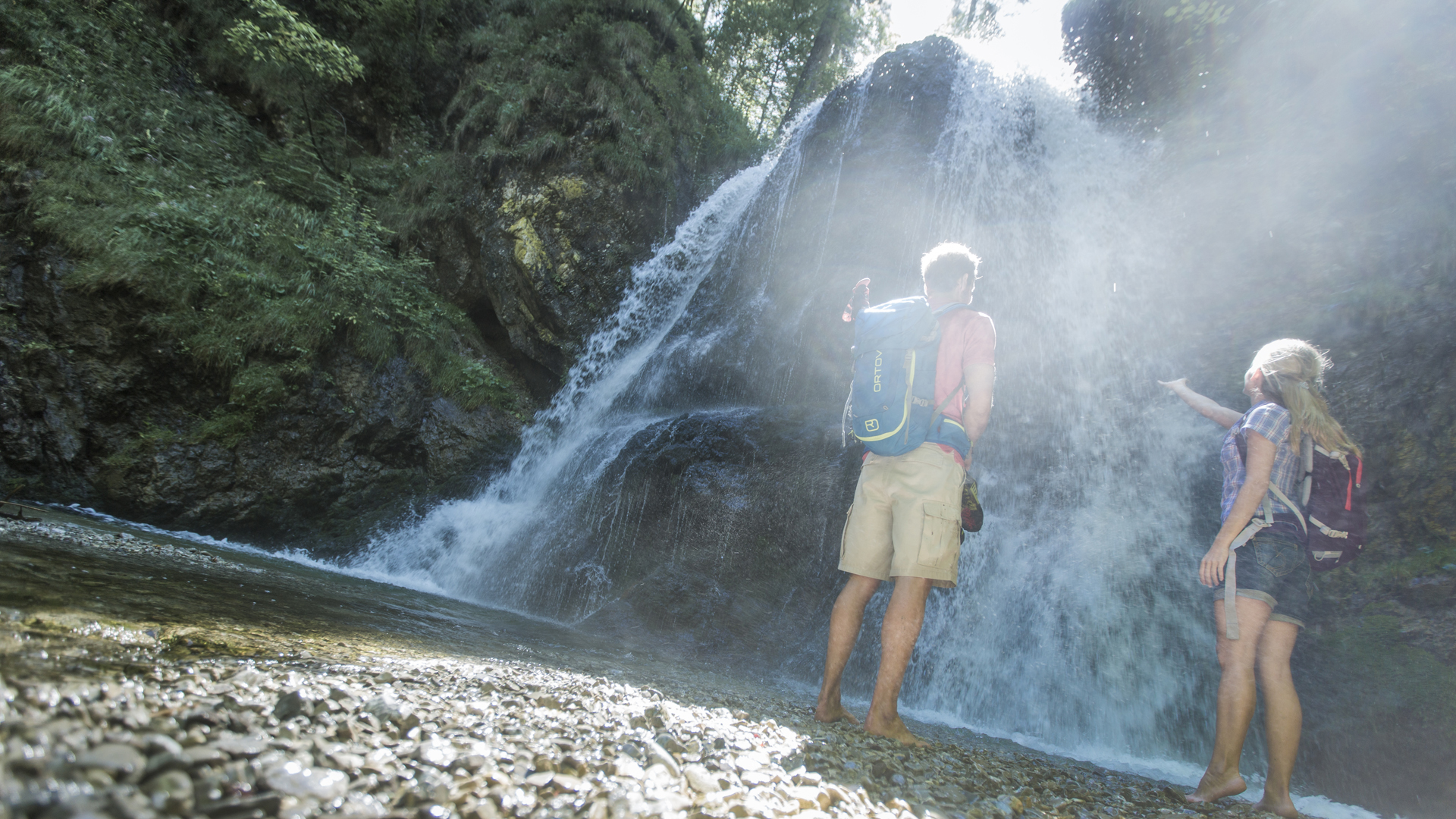 Im Josefstal angekommen, gehen Sie die Josefstaler Straße entlang, bis Sie am letzten Haus angekommen sind. Jetzt biegen Sie nach rechts und laufen immer geradeaus. Nach etwa 10 Minuten hören Sie das Wasser rauschen und sehen die ersten Wasserfälle in ihrer vollen Pracht. Nun beginnt ein kleiner Aufstieg und Sie laufen mit Ihrer Familie an einem Bach entlang. Sie kommen an weiteren Wasserfällen und Gumpen vorbei. Nehmen Sie sich doch einfach die Zeit und entledigen Sie sich Ihrer Schuhe an einer Stelle, an der das Wasser gut erreichbar und nicht zu tief ist. Sie können aber auch ganz einfach Ihre Hände und Ihre Arme nass machen. Herrlich ist es auch die Schläfe und den Nacken mit ein wenig Wasser zu beträufeln.
