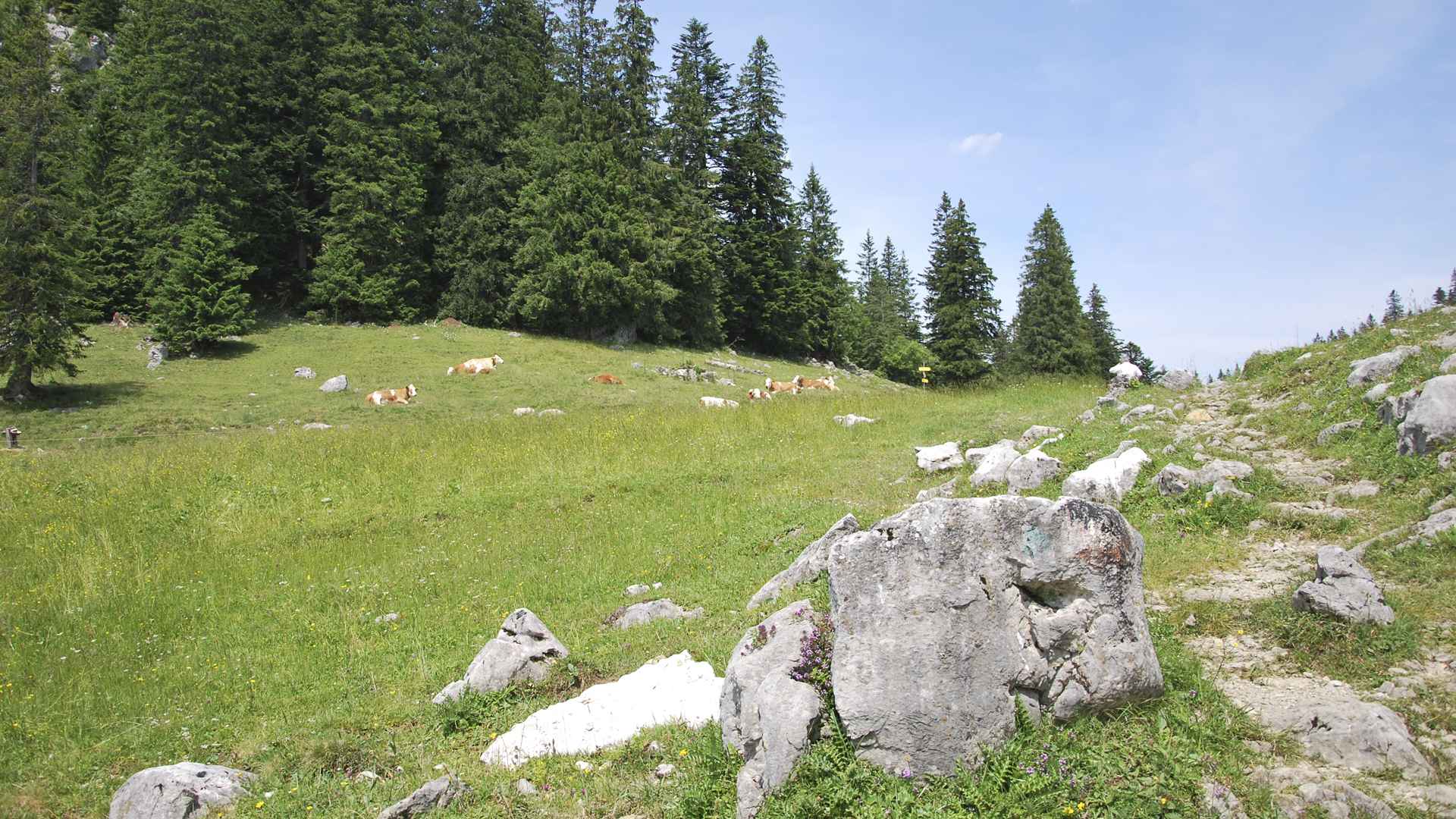 Die letzte kurze Etappe der Steinadler Erlebniswanderung Spitzingsee führt Sie um den Hang herum bis zur Schönfeldalm. Von hier aus starten mehrere Wandertouren zu den Gipfeln der Aiplspitz, Rotwand oder Jägerkamp.