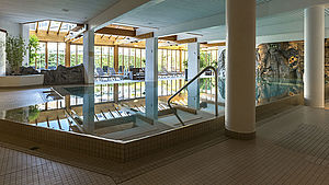 The wellness area at the hotel Karma Bavaria is the perfect place to enjoy some relaxing moments in the inside swimming-pool with upstream swimming and waterfall. You can also choose the whirlpool, sauna, steam bath, fitness area, the winter garden with loungers and the rehabilitation area. At a small additional charge, you also can book massages, beauty and many other wellness treatments at the Karma Spa.