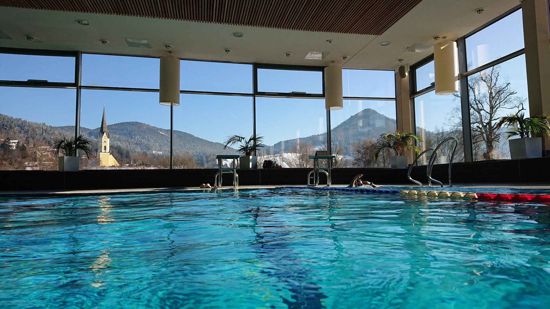 Eintauchen ins belebende kühle Nass. Mit kraftvollen Zügen durch das 25 Meter-Becken. Herrliche Entspannung im Whirlpool oder auf einer der Massageliegen unter Wasser. Oder lieber Herzklopfen in der Black-Hole-Wasserrutsche? Die Vielfalt in der monte mare Vitaltherme ist groß und wird den ebenso vielseitigen Wünschen der Besucher gerecht. Schon der erste Eindruck ist überwältigend. Die transparente Architektur lässt einen traumhaften Ausblick auf See und Berge zu –und die Natur fast bis ins Innere. Im Salzwasser-Außenbecken - mit Massagedüsen und Brodelgrotten - ist die einzigartige Kulisse zum Greifen nah. Aktivität oder Ruhe, hier findet jeder seinen Bereich.