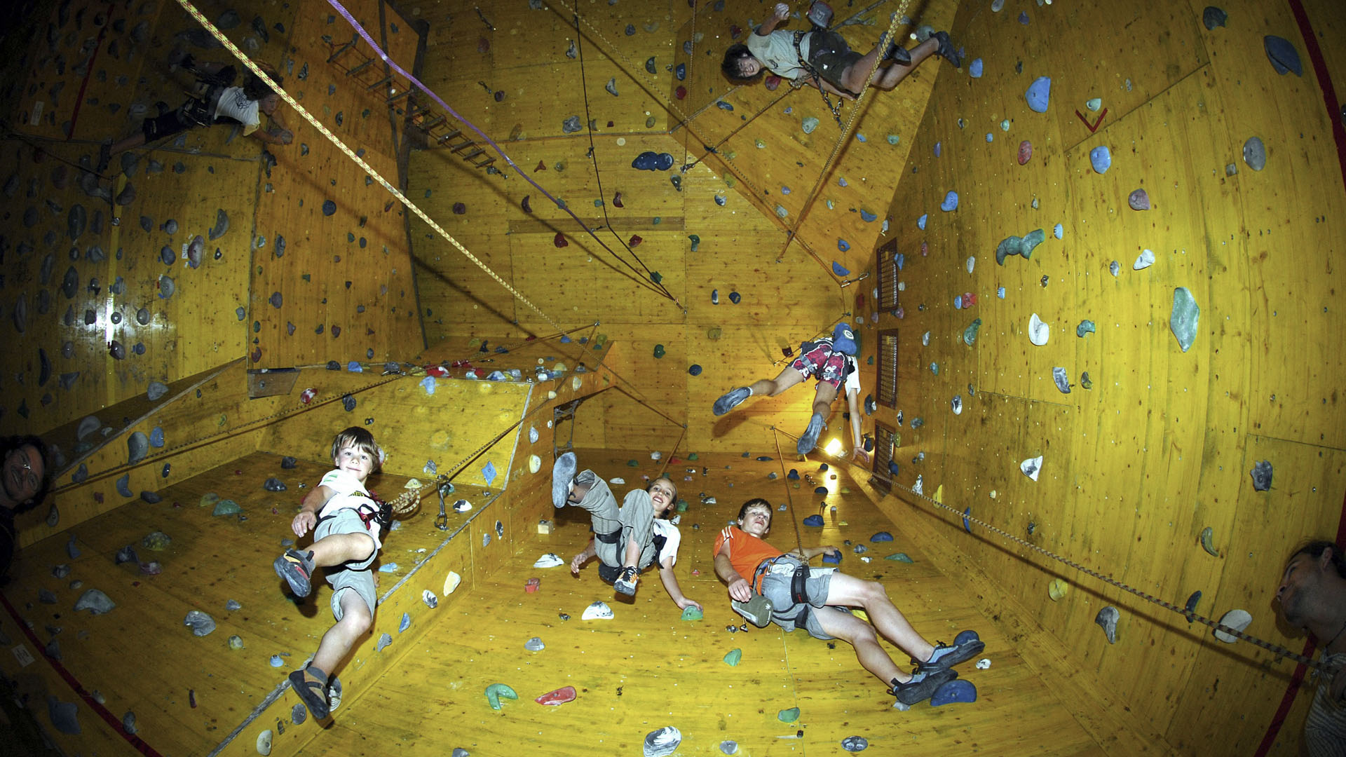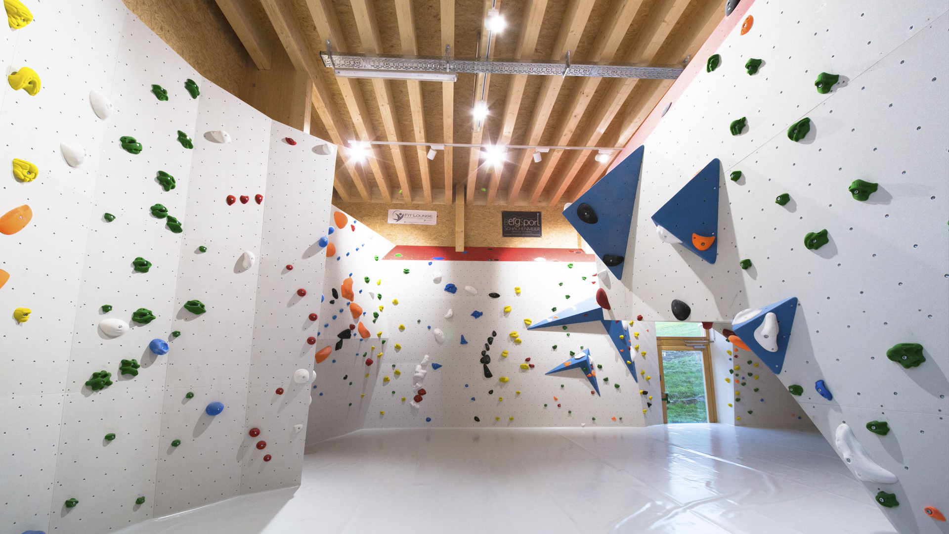 The Climbing and boulder centre Weyarn / Leifheit Hall offers a great choice of courses for beginners and professionals. The hall opened on October 31st in 2015. It is the largest hall of the uplands and provides more than 300 climbing- and boulder-routes on a surface area of 2.500 square metres. The routes are up to 16 metres high and 25 metres long. All in all there are six different gym halls. The biggest hall offers a climbing area of 675 square metres. Here you can climb up the 16 metres high walls or try to move along the five metres long overhanging area. There also are different kinds of boulder rooms, an instruction area, an adventure section with an interactive climbing wall, a therapy zone and since May 16th an exterior wall inside the climbing centre. The boulder hall is 600 square metres big and is also open since 2016.