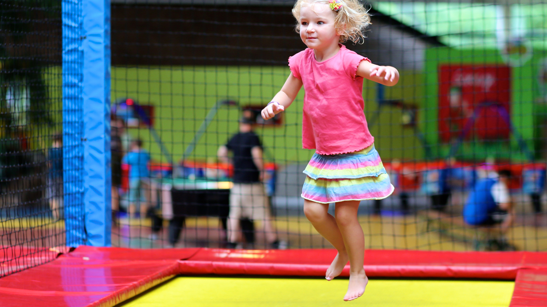 The „Spiel- und Sportarena in Bad Wiessee“ (Play- and Sportsarena in Bad Wiessee) offers fun and action for the whole family. Children and adults can jump, climb, rant and rave, regardless of how the weather is. The roof of the hall is opened as soon as the sun shines and during warm days. All playground-facilities and the equipment is TÜV-certified (TÜV = Association for Technical Inspection) and wearing socks is compulsory.