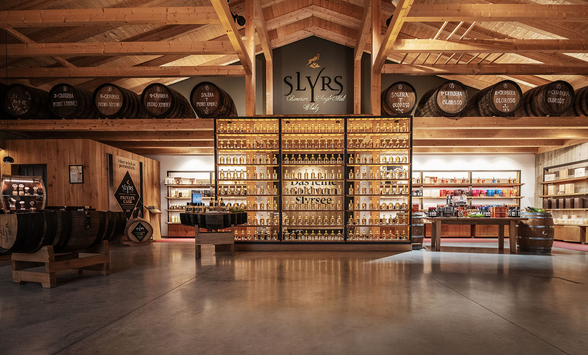 Entdecken Sie das flüssige Gold vom SLYRSee direkt vor Ort in der SLYRS Erlebniswelt. Schauen Sie uns bei der Arbeit an den kupfern glänzenden Brennblasen über die Schulter. Bestaunen sie unsere wertvollen, weitgereisten Holzfässer in der Fasshalle. Riechen Sie den unverkennbaren „Angels´ Share“. Und erfahren Sie bei einer Destilleriebesichtigung in Eigenregie oder einer geführten Tour alles über unseren SLYRS Bavarian Single Malt Whisky, seine Herstellung und den einzigartigen Geschmack. Die Destillerie und unser Shop stehen Ihnen 365 Tage im Jahr offen, wir freuen uns auf Sie!