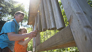 Das Klettern- und das Balancieren können die Kleinen ebenfalls auf dem Spielplatz üben oder Sie probieren gemeinsam den Balancierparkour durch den Wald aus.