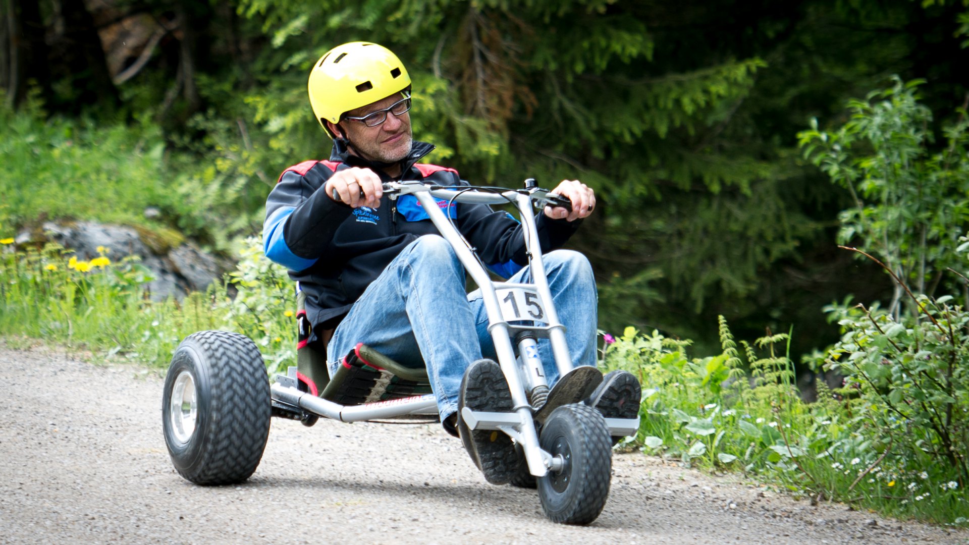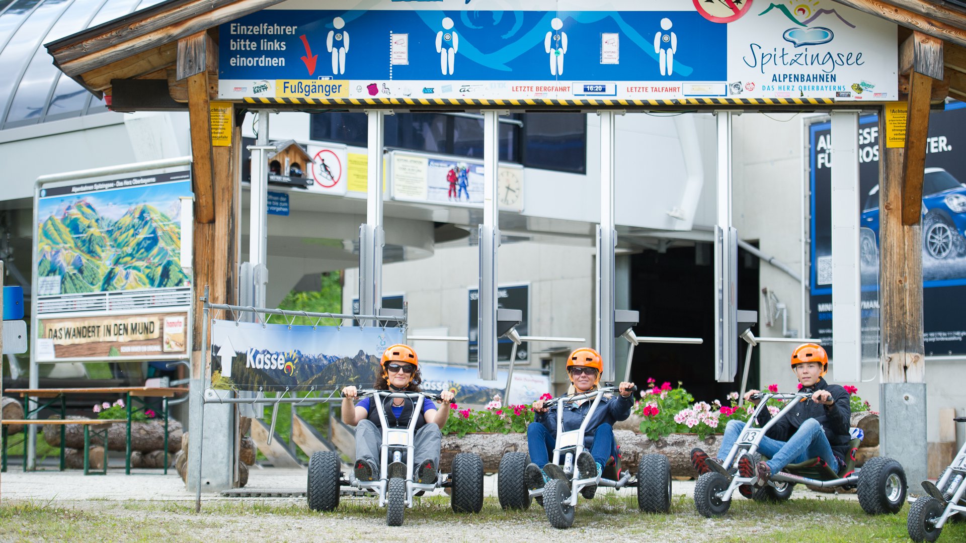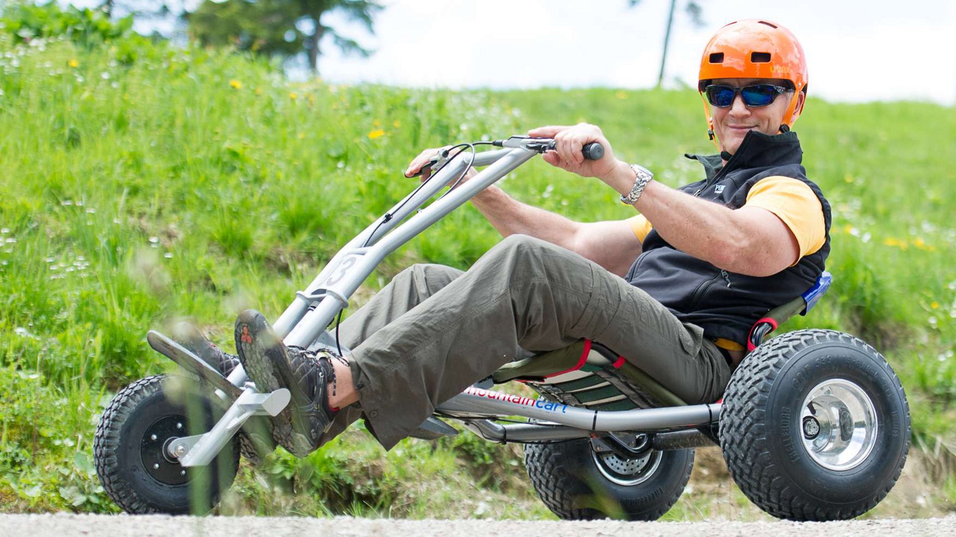 Kinder dürfen ab einer Körpergröße von 1,35 m ein Mountaincart selbst fahren, müssen aber in Begleitung eines erziehungsberechtigten Erwachsenen sein.