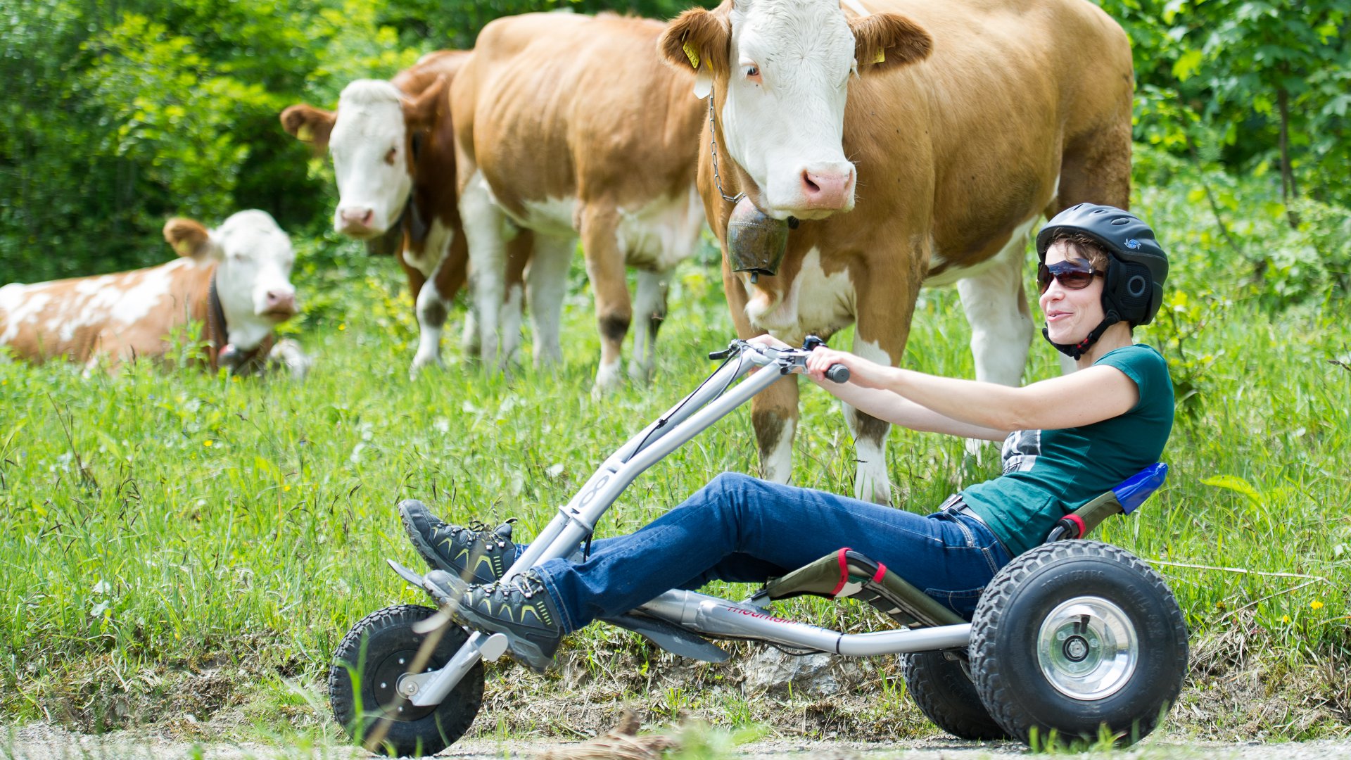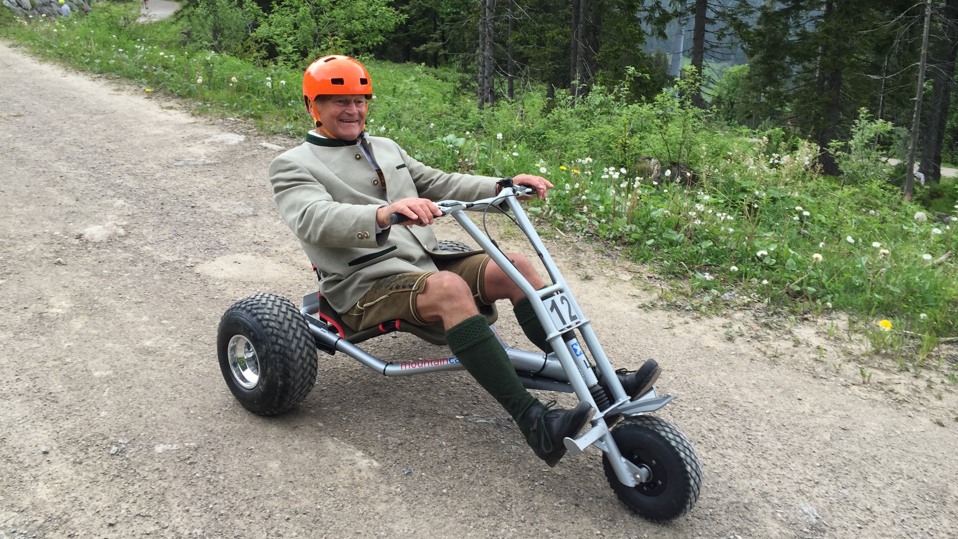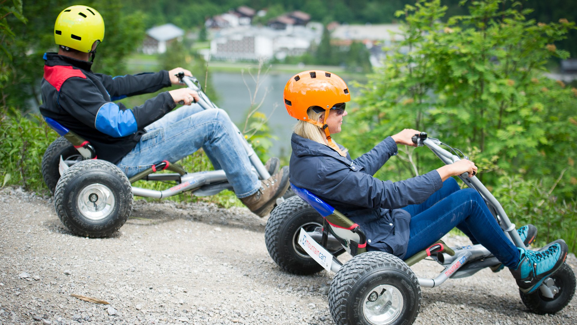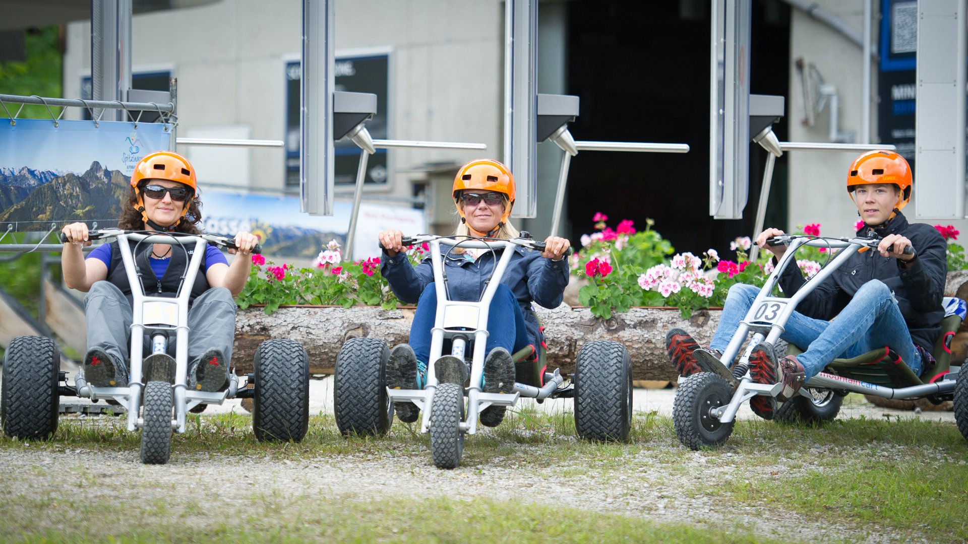 Kinder dürfen ab einer Körpergröße von 1,35 m ein Mountaincart selbst fahren, müssen aber in Begleitung eines erziehungsberechtigten Erwachsenen sein.