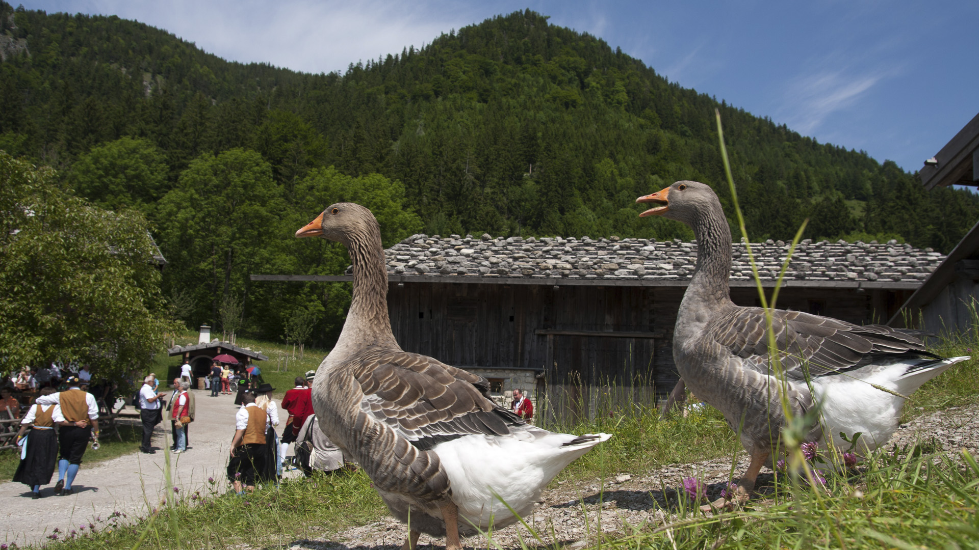Auf den Wiesen des Museums leben alte Haustierrassen, die zum Teil sogar vom Aussterben bedroht sind, z. B. Hühner Gänse, Kühe, Schweine und Bergschafe. Auf den Wiesen und in den Bauerngärten werden zudem alte Kulturpflanzen, Alpenkräuter und verschiedene Gemüsesorten angebaut.