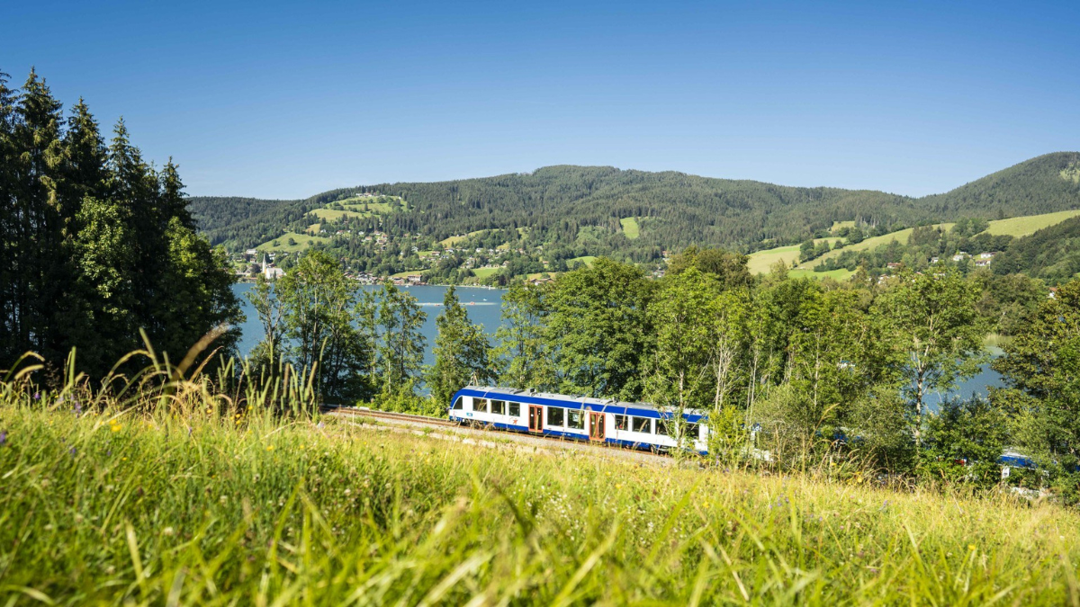 Der Zug der Bayerischen Oberlandbahn fährt stündlich ab München bis nach Schliersee.